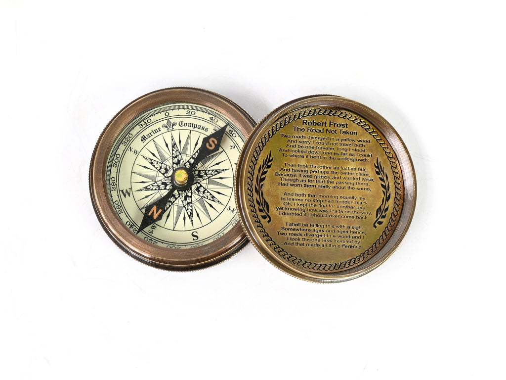 Brass Nautical 2 inches Vintage Compass Replica Brass Pocket Transit Compass - Robert Frost Poem - 1104 BN