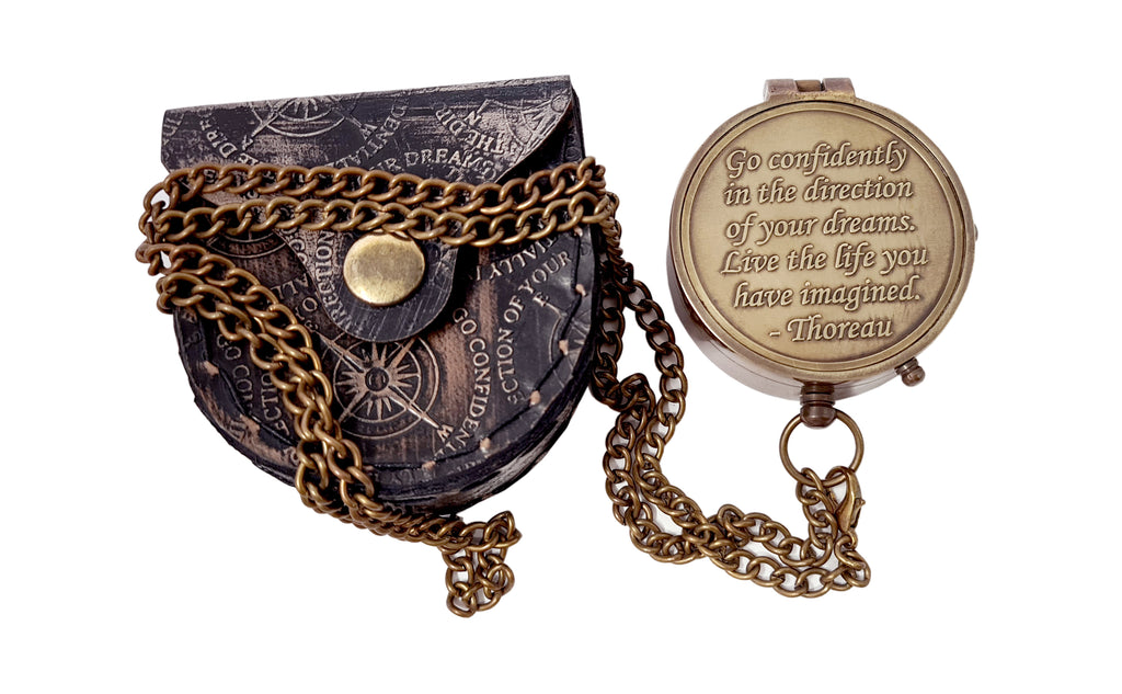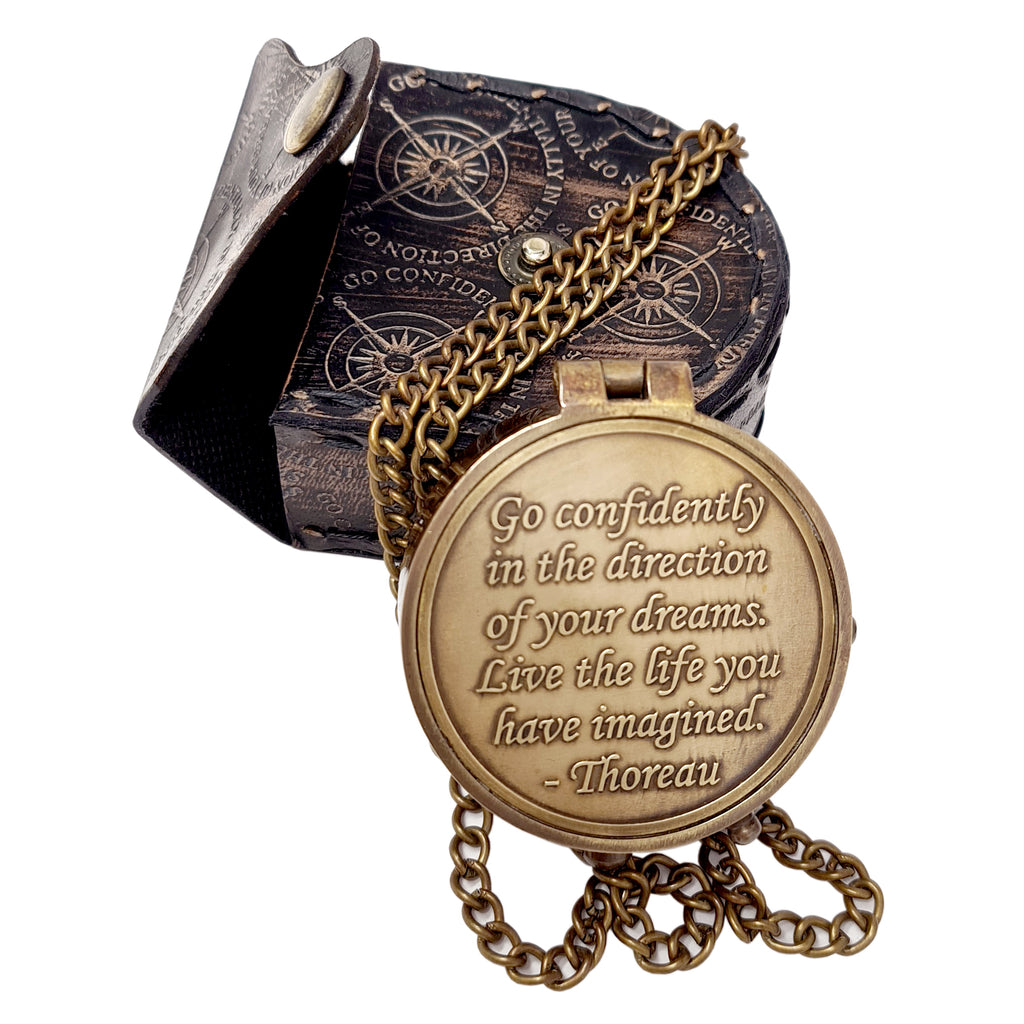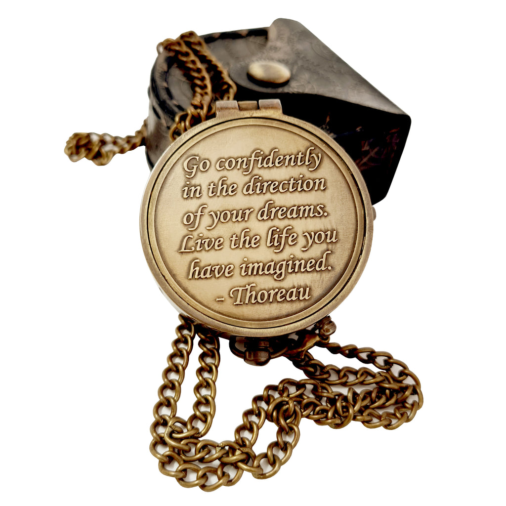 Brass Nautical - Thoreau's Go Confidently Brass Compass, Gift for Graduation, Confirmation Day, Baptism, New Year Gift, Birthday, Anniversary, Communion, Camping Gift - 11512